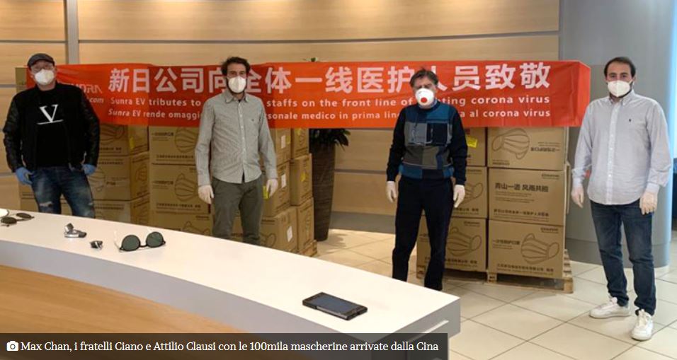 La Sunra Electric Vehicle, che ha una filiale a Cosenza, ha donato 100mila mascherine all’Ordine dei Medici di Cosenza