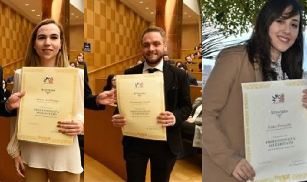Alessia Autolitano da Brancaleone (RC), Erika Fittipaldi da Falerna (CZ) – impossibilitata, perรฒ, a presenziare alla Cerimonia di persona- ed Emmanuele Tricoli da Crotone.