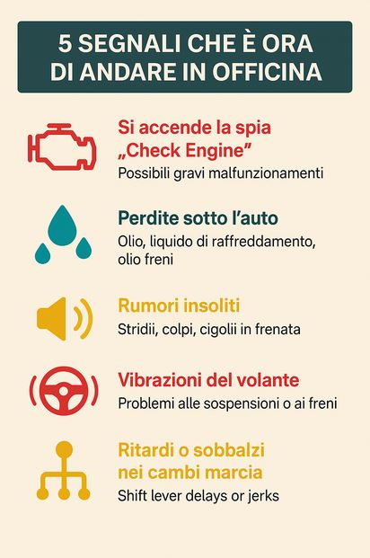 Infografica con 5 segnali che indicano quando portare l’auto in officina