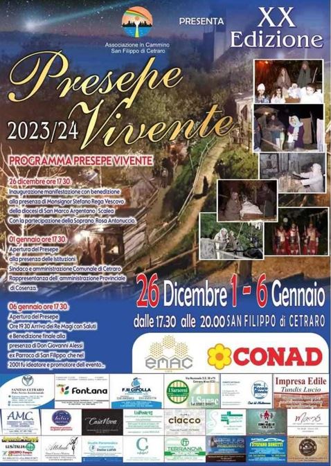 L’evento si svolge in tre appuntamenti fissi: il 26 dicembre 2023, 01 e 06 gennaio 2024 dalle ore 17,30 alle ore 20 in contrada San Filippo di Cetraro