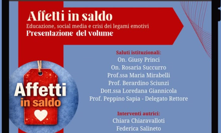 GiovedƬ 9 aprile 2026, alle ore 10:30, presso lāAula Solano, Cubo 19B, allāUniversitĆ della Calabria, si terrĆ la presentazione del volume Affetti in saldo Educazione,...