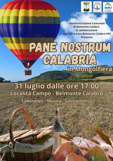 Non perdete l’appuntamento con “Pane Nostrum Calabria… in Mongolfiera” il 31 luglio dalle ore 17:00 Località Campo – Belmonte Calabro (CS)