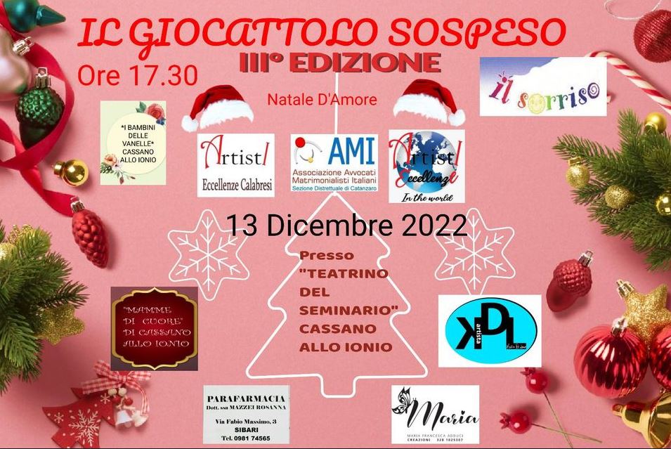 “Iniziativa di carattere solidale promossa dall’Associazione Artisti Eccellenze Calabresi e da AMI (Avvocati Matrimonialisti Italiani – sez. Distrettuale di Catanzaro) per permettere a tutti i bambini di vivere la magia del Natale.