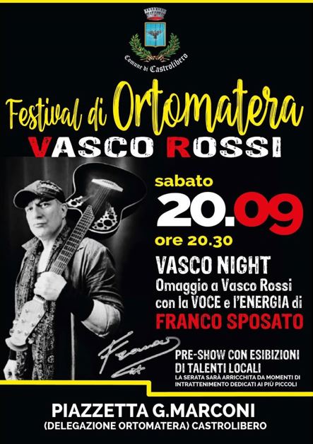 Sabato 20 settembre, dalle ore 20.30, ci sarà il raduno dei fan di Vasco della Calabria con la serata a tema dedicata al cantautore di Zocca