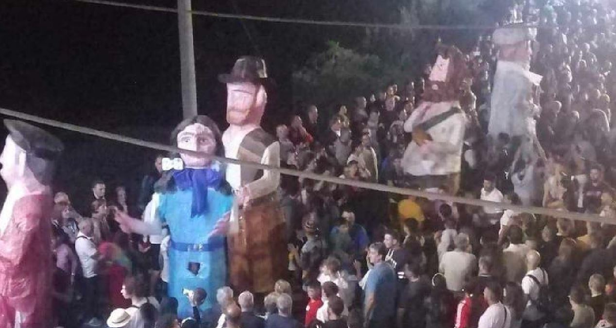 Lungo il percorso questi enormi pupazzi si esibiscono in salti, danze e corse.
