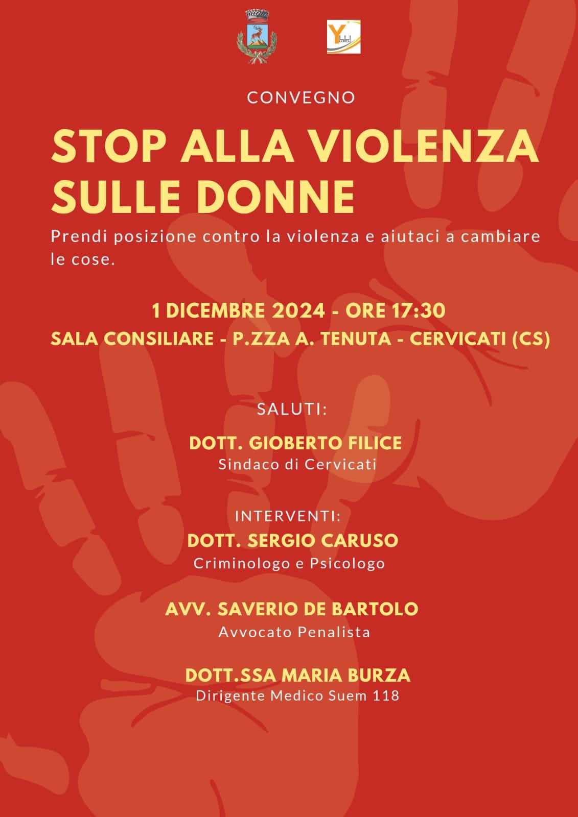 L’Amministrazione di Cervicati, in collaborazione con l’Associazione Ylli, in data 1 dicembre, alle ore 17.30, ha promosso un convegno contro la violenza sulle donne. Molte le iniziative che avverranno all’ interno della convention.