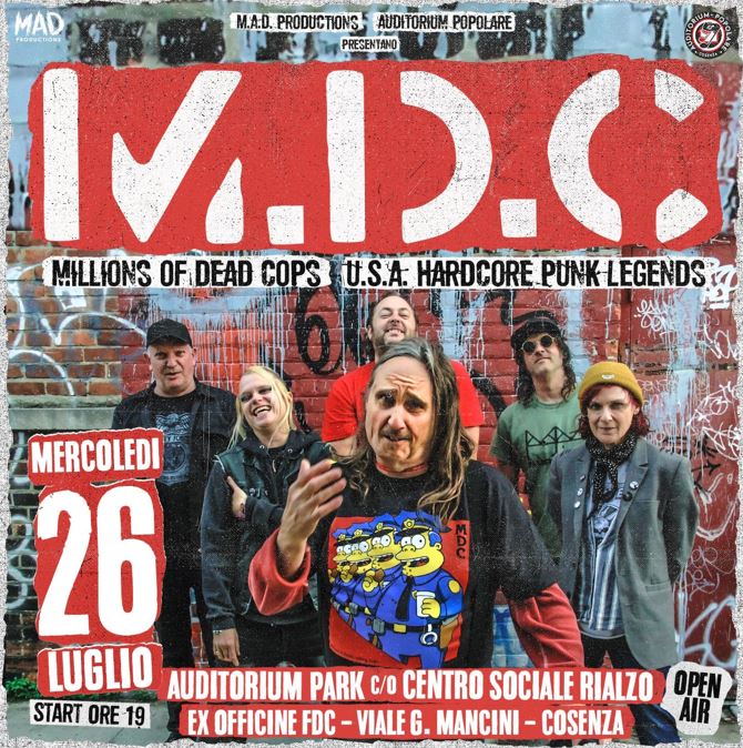 Mercoledì 26 luglio, per la prima volta nell’estremo Sud Italia, approda a Cosenza una leggenda del Punk Hardcore americano degli anni ’80, gli M.D.C. capitanati dal frontman Dave Dictor