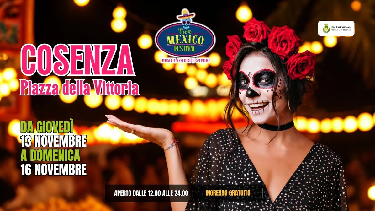 Dal 13 al 16 novembre 2025, la centrale Piazza della Vittoria a Cosenza si trasforma in un autentico villaggio messicano: quattro giorni dedicati alla cultura, al gusto e all’allegria del Messico.