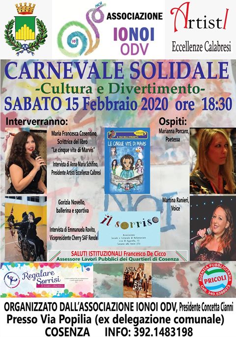 “Evento organizzato dall’affermata Associazione ‘IONOI ODV’ a Cosenza. Patrocinata dal comune di Cosenza e dell’omonima associazione “Artisti Eccellenze Calabresi”, in collaborazione con l’Associazione Cherry Saf di Rende.