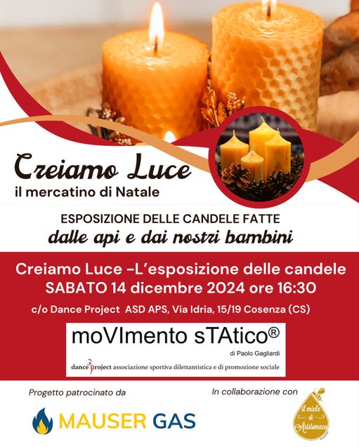 Evento conclusivo del progetto “Creiamo Luce”, un laboratorio arteterapico dedicato ai bambini della comunità di Cosenza, nato per promuovere inclusione sociale, creatività e sostenibilità che si terrà sabato 14 dicembre dalle 16:30 alle 18:30 presso Dance Project ASD APS – Via Idria, 15/19, Cosenza