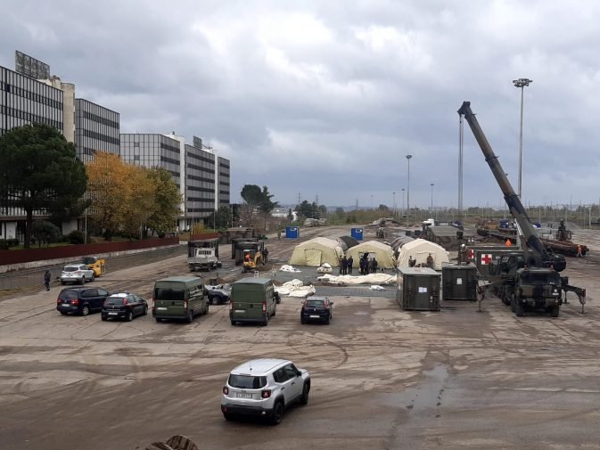 Ieri sono arrivati 18 containers ed i lavori di allestimento sono andati avanti fino a tarda sera