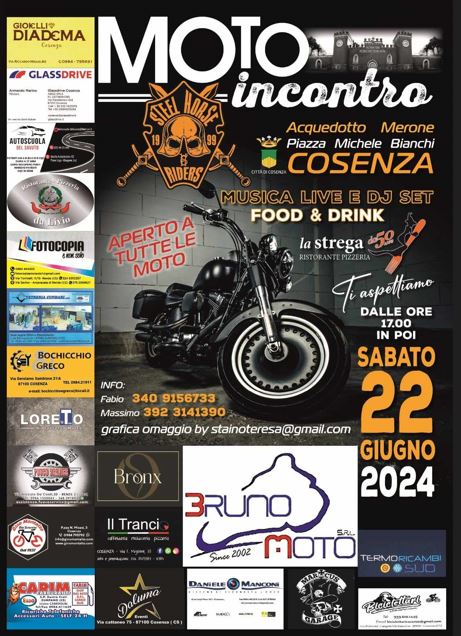 Gli Steel Horse Riders sono un gruppo di appassionati del mondo custom e delle moto Harley Davidson. Fondato nel lontano 1999 dal compianto “Presidente Antony Belsito” e dall’attuale membro Mario Russo, entrambe Italoamericani. Condividendo la passione per le due ruote con tutti i tipi di moto siamo lieti di invitarvi al nostro evento che si svolgerà in collaborazione con il ristorante pizzeria La Strega che da oltre 50 anni sa offrirci buon cibo e ottima pizza, connubio perfetto con la buona musica del dj set e dei Twist Contest.