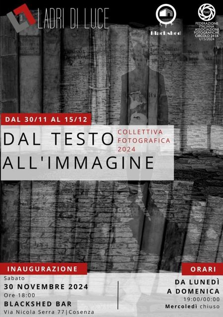 L’associazione fotografica di Cosenza “Ladri di Luce”, esporrà la mostra sabato 30 novembre 2024 alle 18:00 presso il BLAKSHED BAR, a Cosenza in Via Nicola Serra, 77