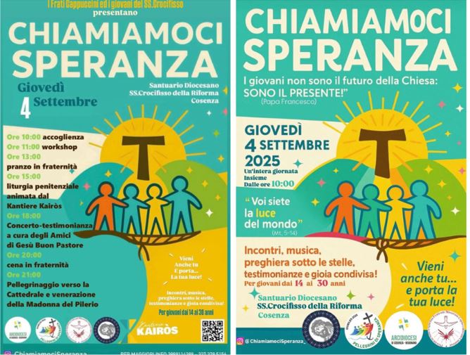 A Cosenza la Giornata “ChiamiamociSperanza”, evento dedicato interamente ai giovani
