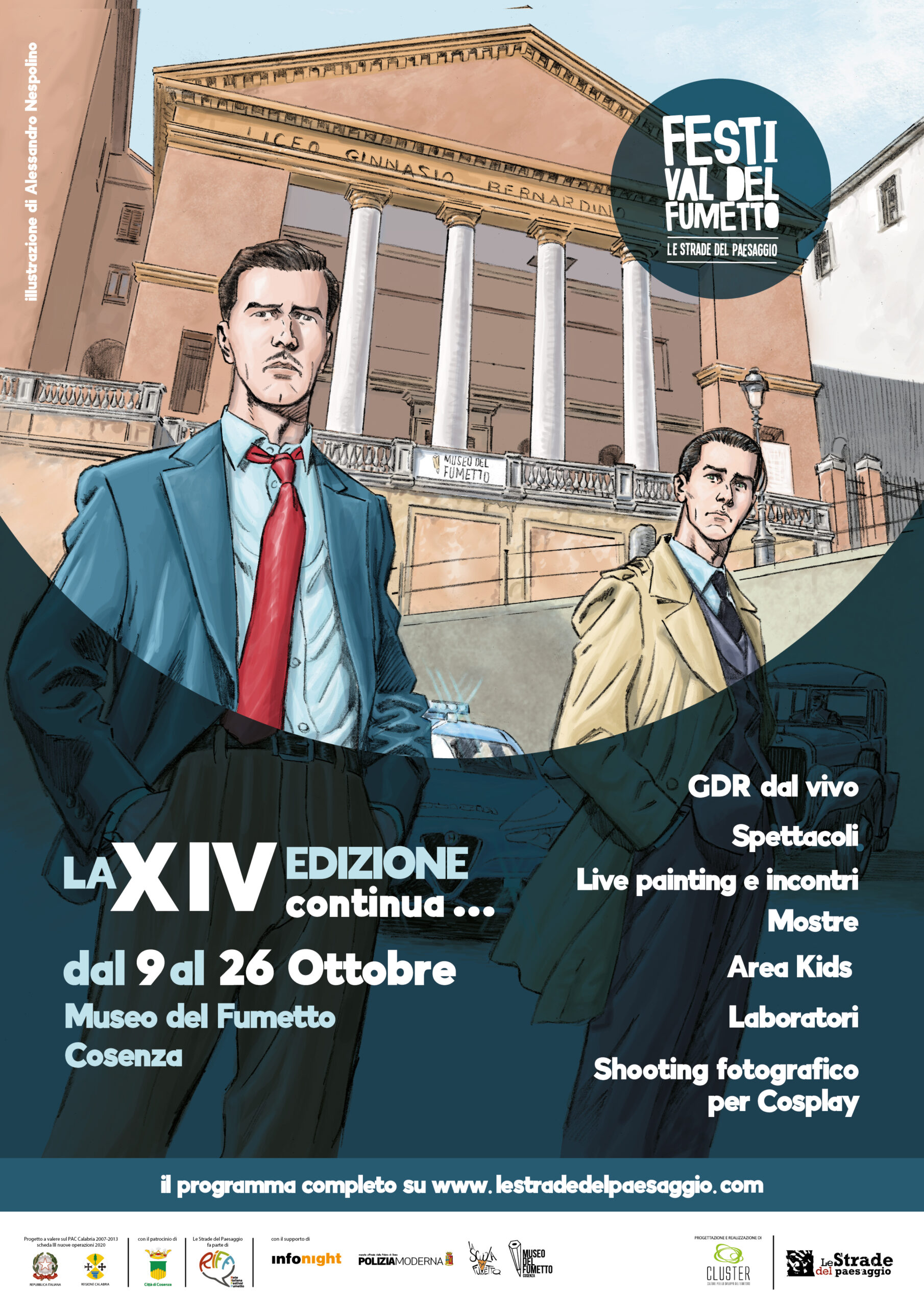 La XIV edizione del Festival del Fumetto Le Strade del Paesaggio è realizzata da Cluster Società Cooperativa, grazie alle partnership con Svevo Srl, Museo e Scuola del Fumetto di Cosenza, infonight, Rete italiana festival del fumetto.”