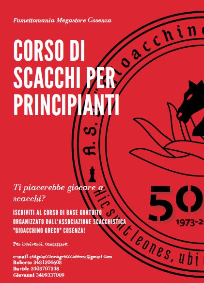 Si tratta di un corso di scacchi base per principianti, che sarà tenuto dagli istruttori dell’ASD “Gioacchino Greco” circolo scacchistico cosentino dal 1973.