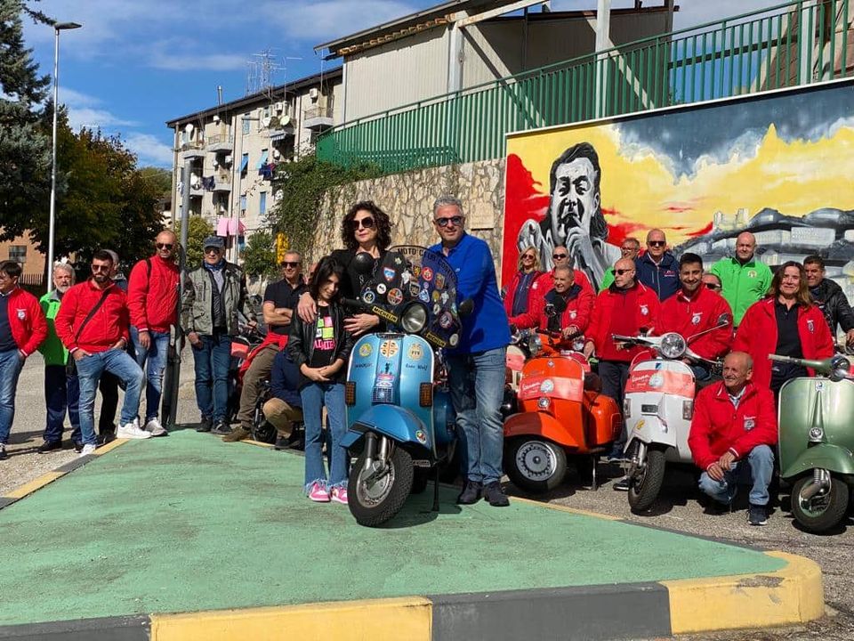 Si sono dati appuntamento a Piazza dei Bruzi a Cosenza, per poi raggiungere il murales di Mario Gualtieri che ha fatto da cornice a questa fantastica giornata, regalando una grande emozione alla famiglia Gualtieri, ricordando una vecchia passione di Mario… la vespa.