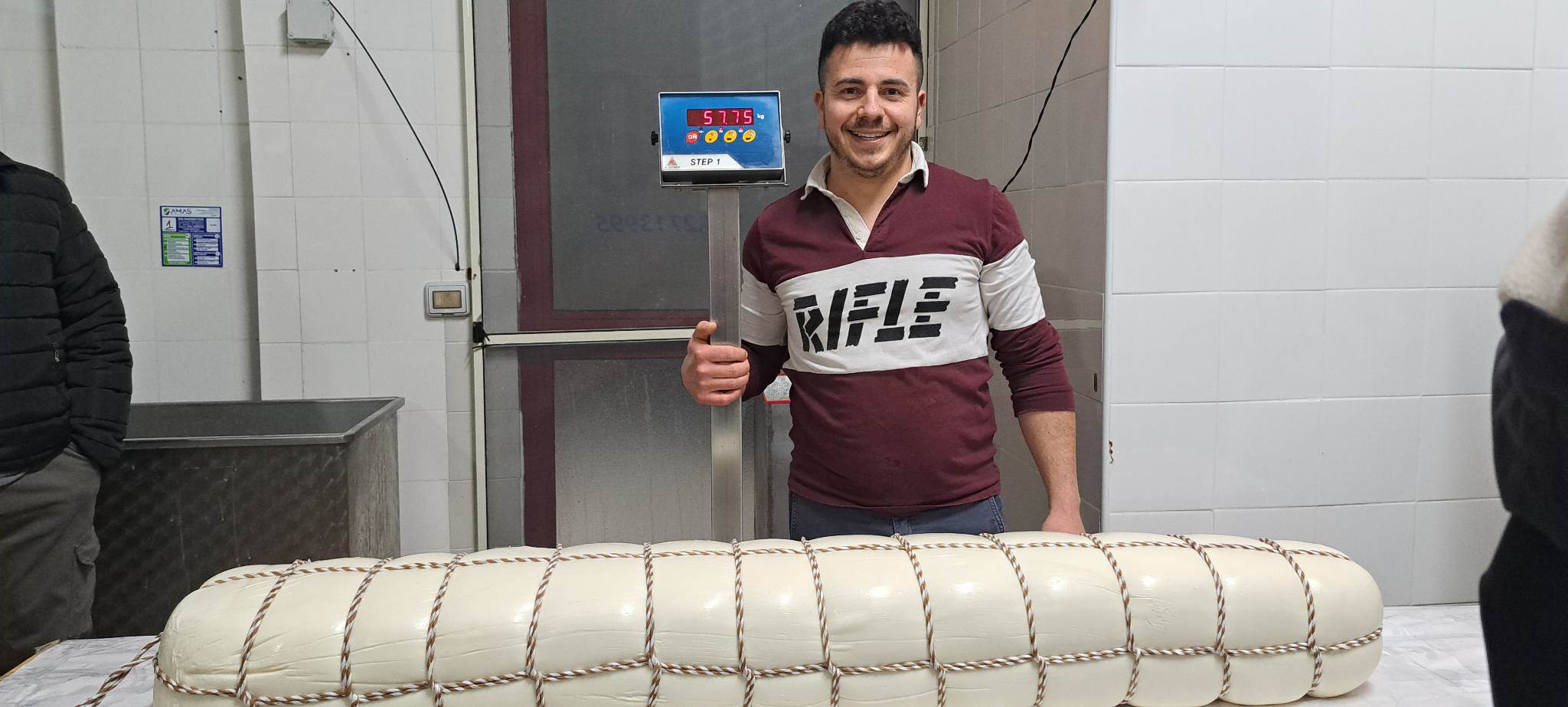Un caciocavallo da quasi 58 kg, lavorato interamente a mano, è stato realizzato oggi presso il Caseificio “Il Cestino del Casaro”, che si trova su Viale della Repubblica al civico 427.