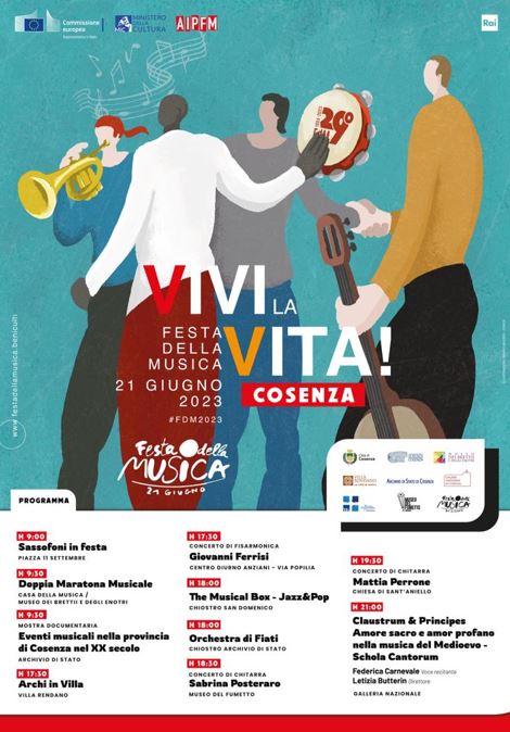 “Anche quest’anno Cosenza risponde presente all’appello della Festa della Musica– sottolinea il Sindaco Franz Caruso nell’annunciare le iniziative programmate dall’Amministrazione comunale per l’importante appuntamento del 21 giugno. Siamo particolarmente lieti del fatto – ha aggiunto Franz Caruso – che si riproponga l’ormai collaudata collaborazione con il Conservatorio “Stanislao Giacomantonio” di Cosenza da cui proviene buona parte dei musicisti che si esibiranno durante tutto l’arco della giornata. Fedeli allo spirito della Festa, tutti i concerti sono ad ingresso gratuito e saranno dislocati, per buona parte, all’aperto, in alcuni dei luoghi più significativi che appartengono al patrimonio culturale della città, ma anche in altri, meno convenzionali, che ospiteranno i gruppi o i singoli musicisti che arricchiranno, con le loro performances, l’importante evento che coincide con il solstizio d’estate.