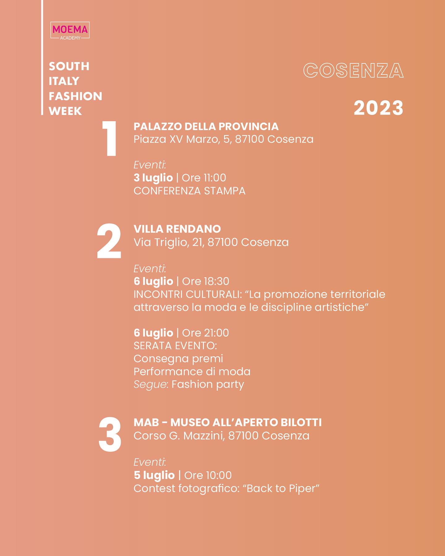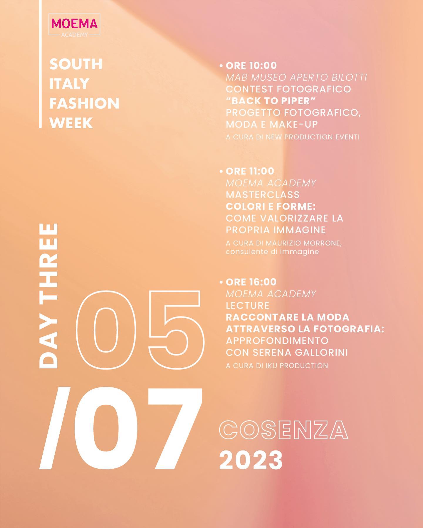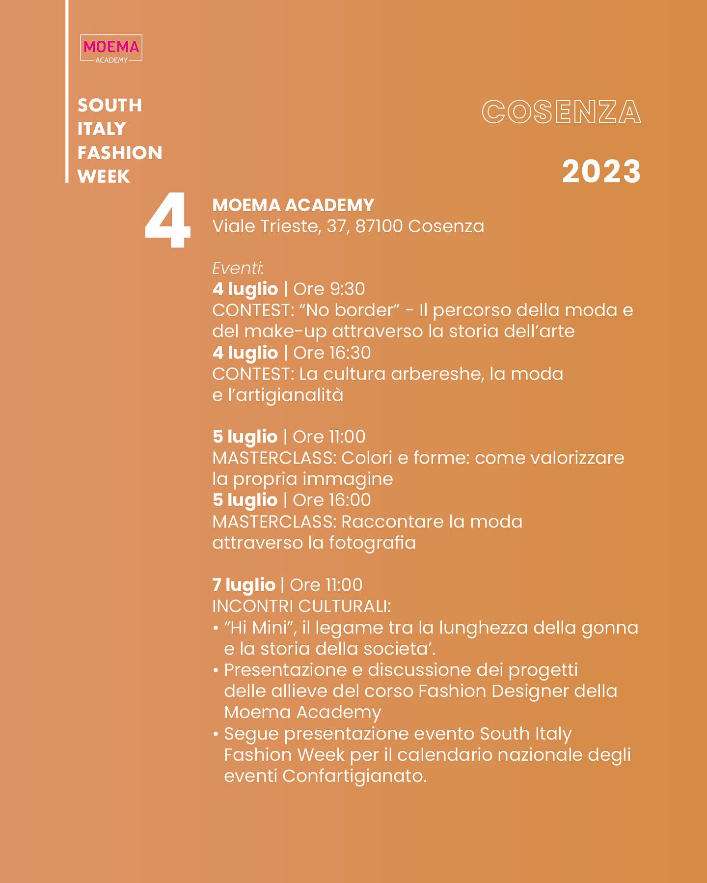 “South Italy Fashion Week giunge alla settima edizione e lancia un programma ricco di incontri con professionisti del settore, approfondimenti, performance di moda, masterclass e fashion party con corner di make-up live.