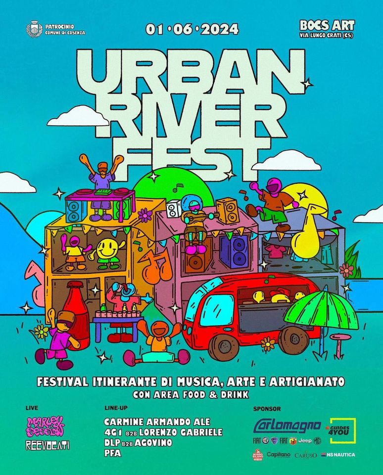 Urban River Fest, da un’idea di C.L.A.P. e delle realtà calabresi Calabria Variopinta ed Impulse Movement, è un festival inteso come un ricco contenitore di musica, esibizioni artistiche, mercatini artigianali e non, che avrà luogo in corrispondenza dell’area 3 Bocs Art del Lungo Fiume sito nel Centro storico di Cosenza.