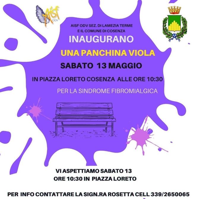 Sabato 13 maggio in Piazza Loreto Cosenza alle 10.30 verrà inaugurata una “panchina viola”