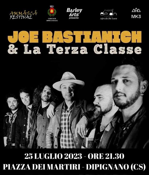 Joe Bastianich & La Terza Classe, il Grande Evento dell’Aammmâscâ Festival 2023 organizzato dall’ Amministrazione Comunale di Dipignano che si terrà nella splendida cornice di Piazza dei Martiri giorno 25 Luglio 2023 dalle ore 21.30