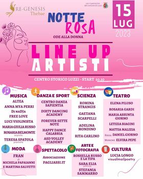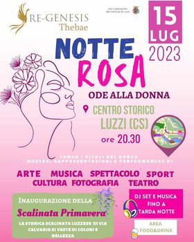 La prima edizione della “Notte Rosa – Ode alla Donna” si terrà giorno 15 Luglio 2023, a partire dalle ore 20.30