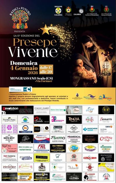 LāAssociazione Radici e Futuro presenta la seconda edizione del Presepe Vivente, in programma il 4 gennaio 2026 a partire dalle ore 17.00, unāiniziativa che torna dopo il successo dello scorso anno e che si propone di rinnovare una delle tradizioni più significative della cultura popolare e religiosa del territorio