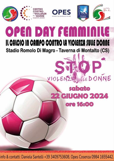 Open day femminile organizzato da Esse Sport Esse Calcio e Opes regionale e nazionale. Precisamente dalla responsabile Nazionale Esse Calcio Daniela Santelli, dal presidente di Esse Sport Salvo Grasso e dal Presidente regionale Opes Mario Gagliardi. Un evento in collaborazione col centro antiviolenza Roberta Lanzino.