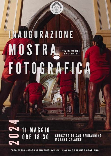 Sabato 11 Maggio alle ore 18.30 presso il complesso di San Bernardino a Morano Calabro, verrà inaugurata la mostra itinerante di William Mauro, Francesco Leonardis e Orlando Graziano, inerente ” Il rito dei Battenti” di Verbicaro