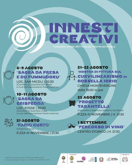 Infine, è previsto “Percorso DiVino”: un tour nel centro storico con artisti e stand delle migliori cantine calabresi che celebreranno il vino locale.