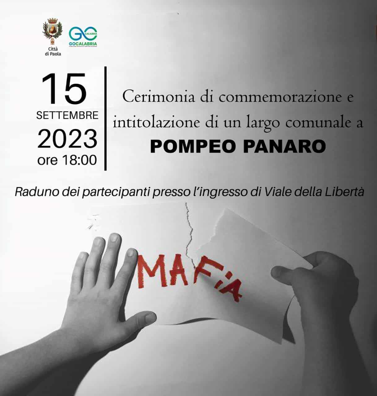 Paolano, marito e padre allora di due figli piccoli, fu imprenditore e politico, avendo rivestito incarichi di rilievo nelle amministrazioni comunali del tempo. L’amministrazione comunale della città di Paola terrà una cerimonia di commemorazione ed intitolazione di un largo comunale a Pompeo Panaro.