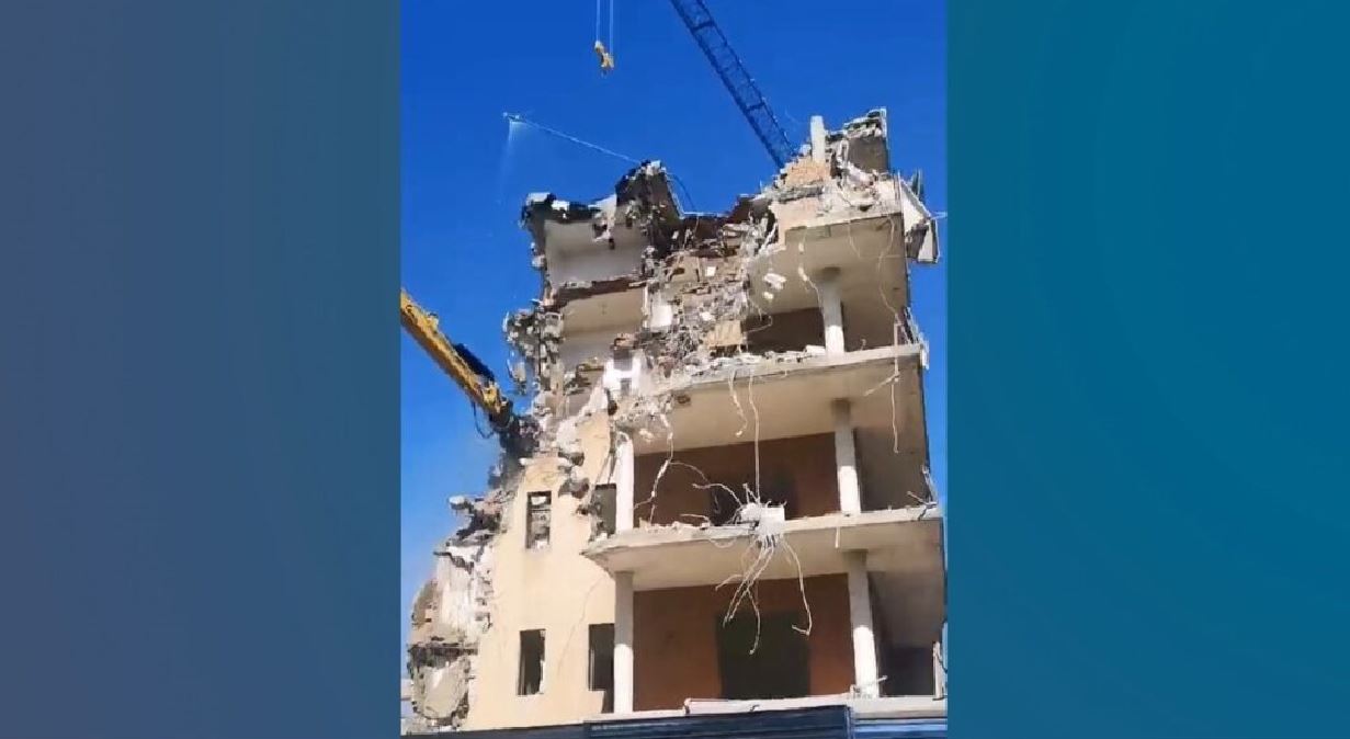 Un edificio è in via di demolizione, già sventrato in parte sul lato che affaccia sulla strada che, da un lato, porta verso lo stadio Lorenzon, e dall’altra in direzione Quattromiglia