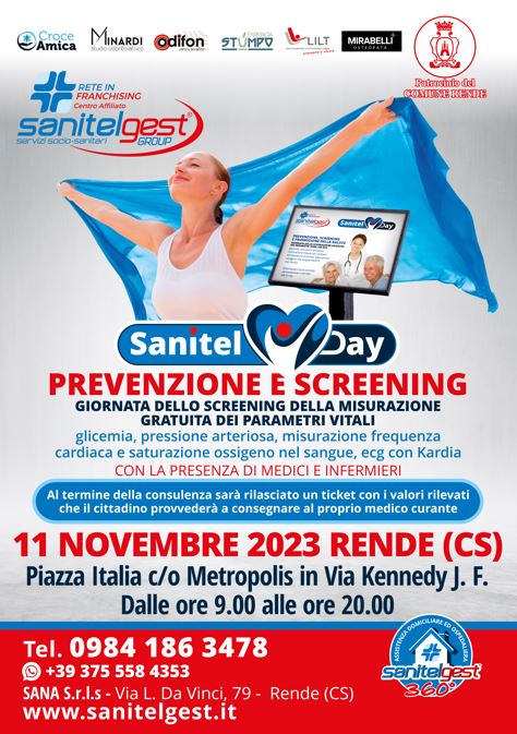 Il prossimo 11 Novembre Sana Srls centro Affiliato Sanitelgest -Società per le Cure domiciliari, realizzerà una giornata gratuita di prevenzione e screening denominata Sanitel Day