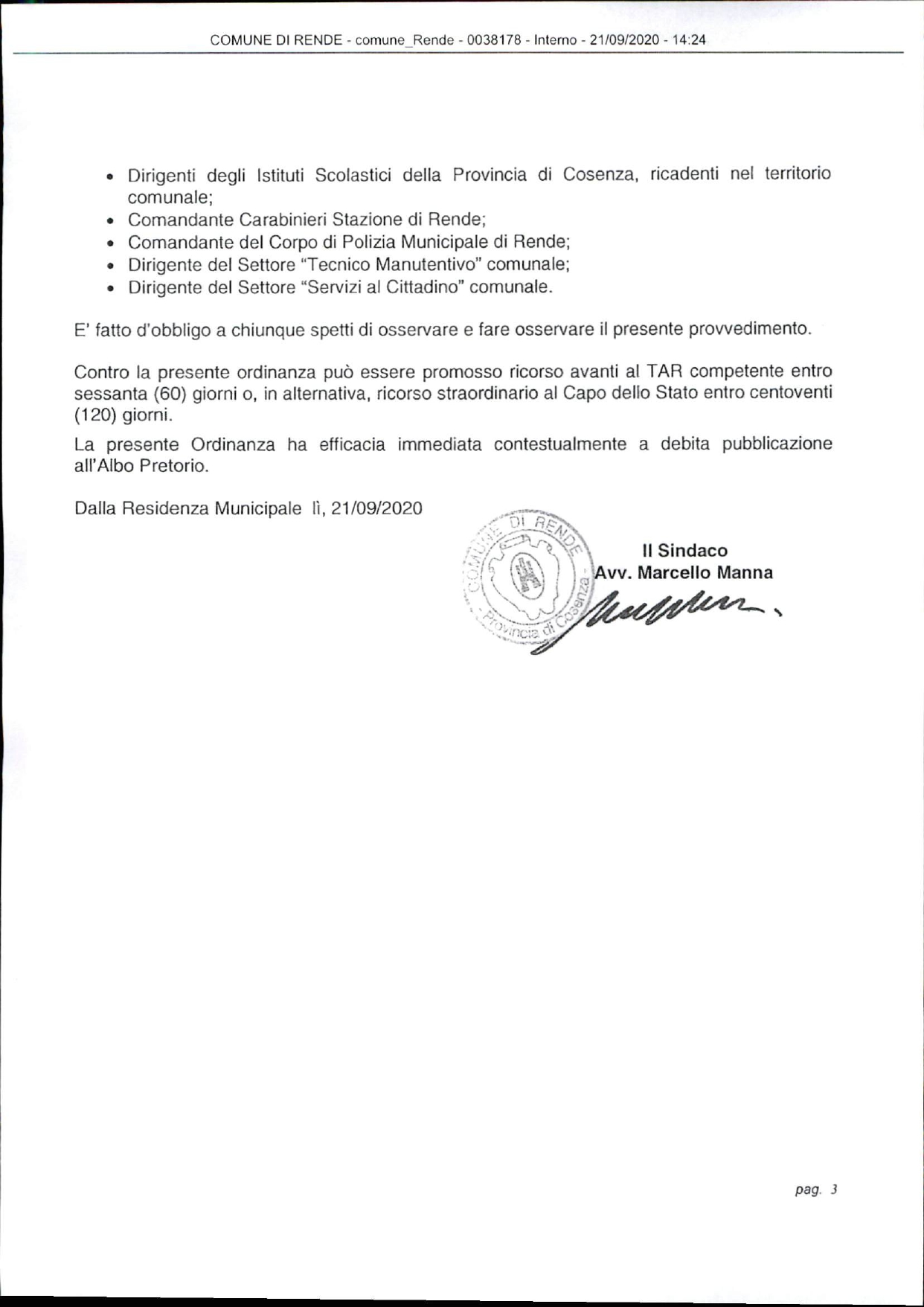 L’ordinanza firmata questo pomeriggio dal Sindaco Manna: