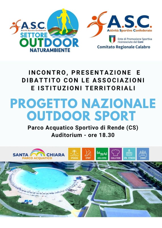 Sabato 3 luglio alle ore 18,30 si terrà presso il parco acquatico di Rende un importante momento di incontro e confronto per tutti gli amanti delle attività outdoor e non solo