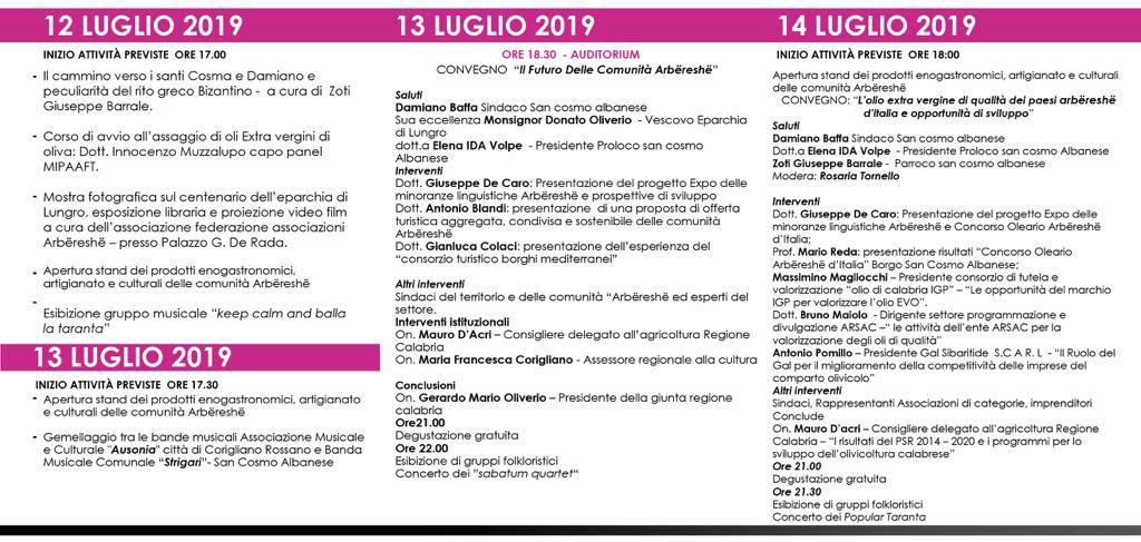 “Si terrà nei giorni 12-13-14 luglio prossimi nel comune cosentino di San Cosmo Albanese la I Edizione di “Expo delle minoranze linguistiche Arbëreshë”.