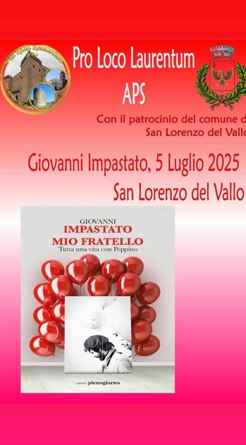 La Proloco Laurentum di San Lorenzo del Vallo, il 5 luglio 2025 alle ore 19:00 presso Piazza Giovanni Paolo II, organizza un dibattito/incontro con Giovanni Impastato, fratello di Peppino