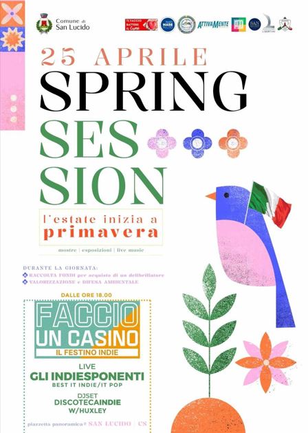 Anche quest’anno a San Lucido l’estate inizia a Primavera, precisamente il 25 Aprile con l’attesissima terza edizione della Spring Session che avrà luogo nella Piazzetta panoramica, tra esposizioni, mostre d’arte e musica live dalle ore 18:00 grazie ad un accattivante concerto indie prima, a al dj set dopo
