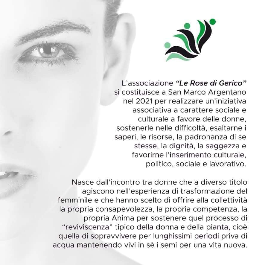 Le Rose di Gerico, è un’associazione a favore delle donne, per sostenerle nelle difficoltà ed esaltarne i saperi, le risorse, la padronanza di se stesse, la dignità, la saggezza e favorirne l’inserimento culturale, politico, sociale e lavorativo.