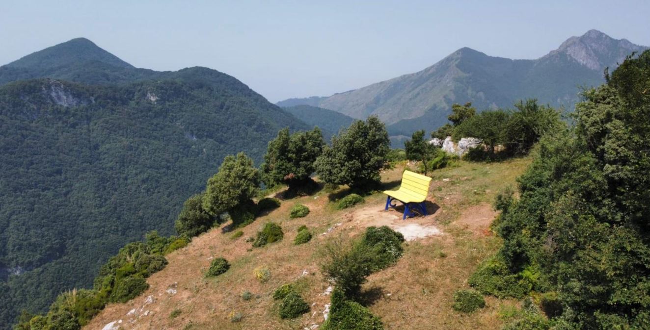 “Location spettacolare per questa panchina gialloblu, che riprende i colori del nostro borgo e che vi regalerà una vista mozzafiato sulla valle dell’Esaro e sulla catena montuosa che rappresenta la prima fascia Montana dell’Appennino calabro.