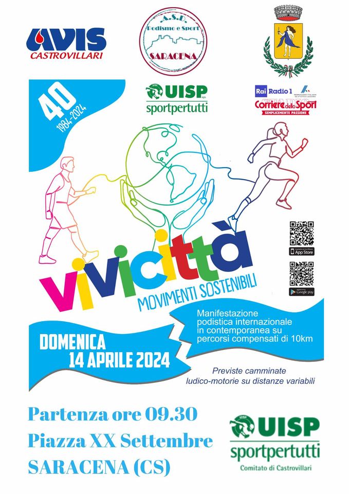 In questi decenni, Vivicittà ha visto partecipare centinaia di migliaia di atlete ed atleti di tutte le nazionalità. Vivicittà si correrà domenica 14 aprile in 39 città, con classifica unica a circuiti compensati, sulla distanza dei 10 km. Il via verrà dato alle 9.30 in diretta da Radio 1 Rai.
