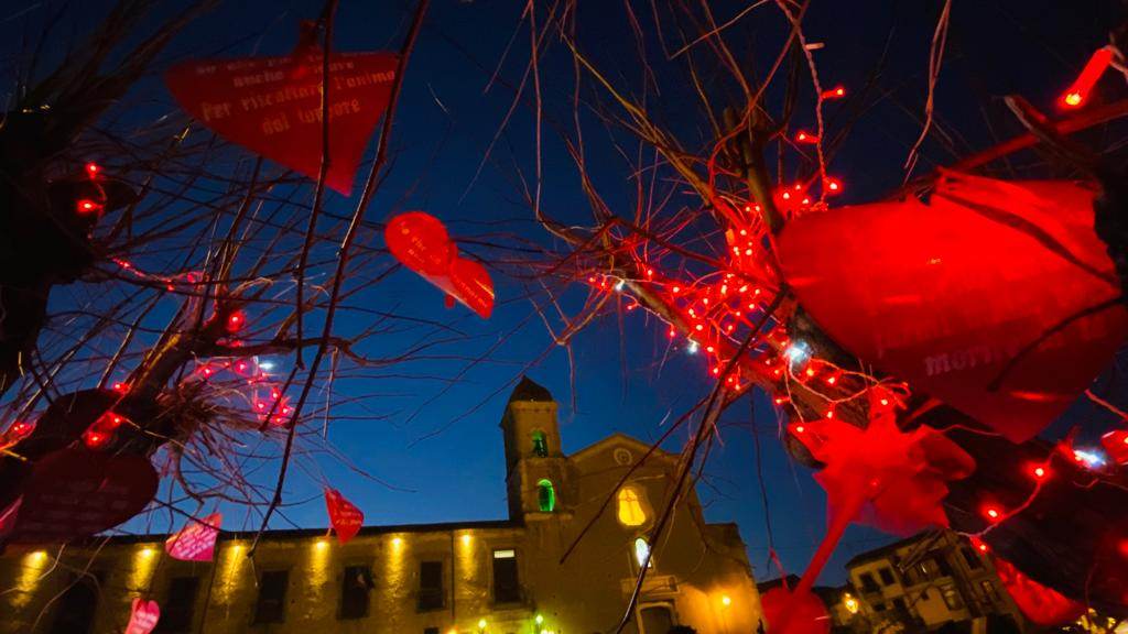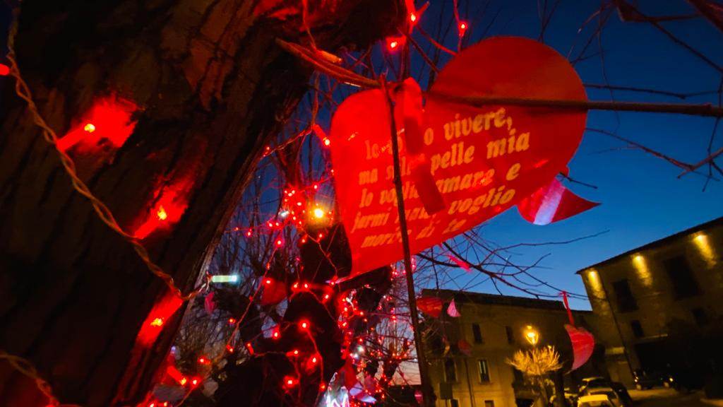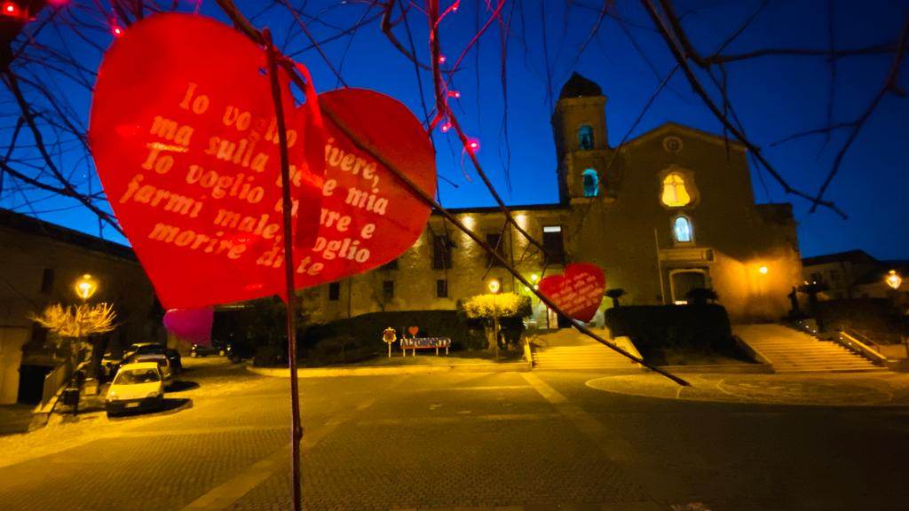 “Succede ad Altomonte, città d’arte in provincia di Cosenza, dove in occasione di San Valentino, in piazza S. Francesco, davanti al Palazzo Municipale, ex Convento dei Frati Minimi, è stato creato un angolo per fermarsi a riflettere sull’amore.