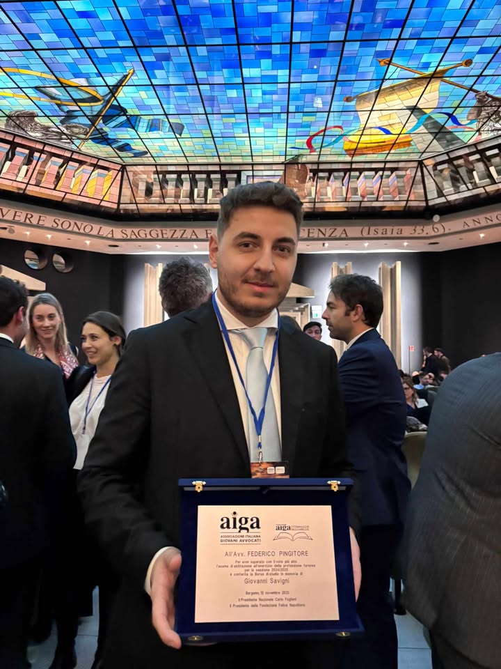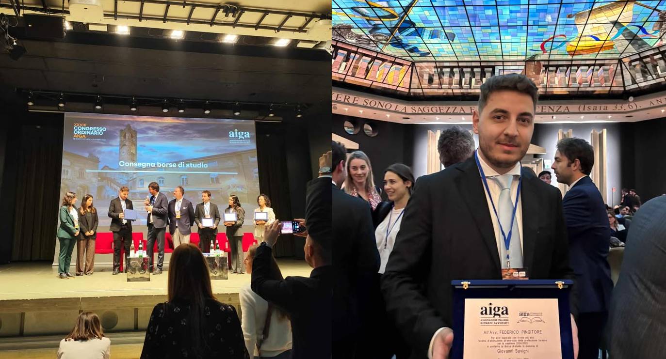 Premiato ieri a Bergamo, in occasione di un congresso nazionale AIGA (Associazione italiana Giovani Avvocati), Federico vince non solo per il voto più alto, 176 su 180, ma anche per la sua giovane età.