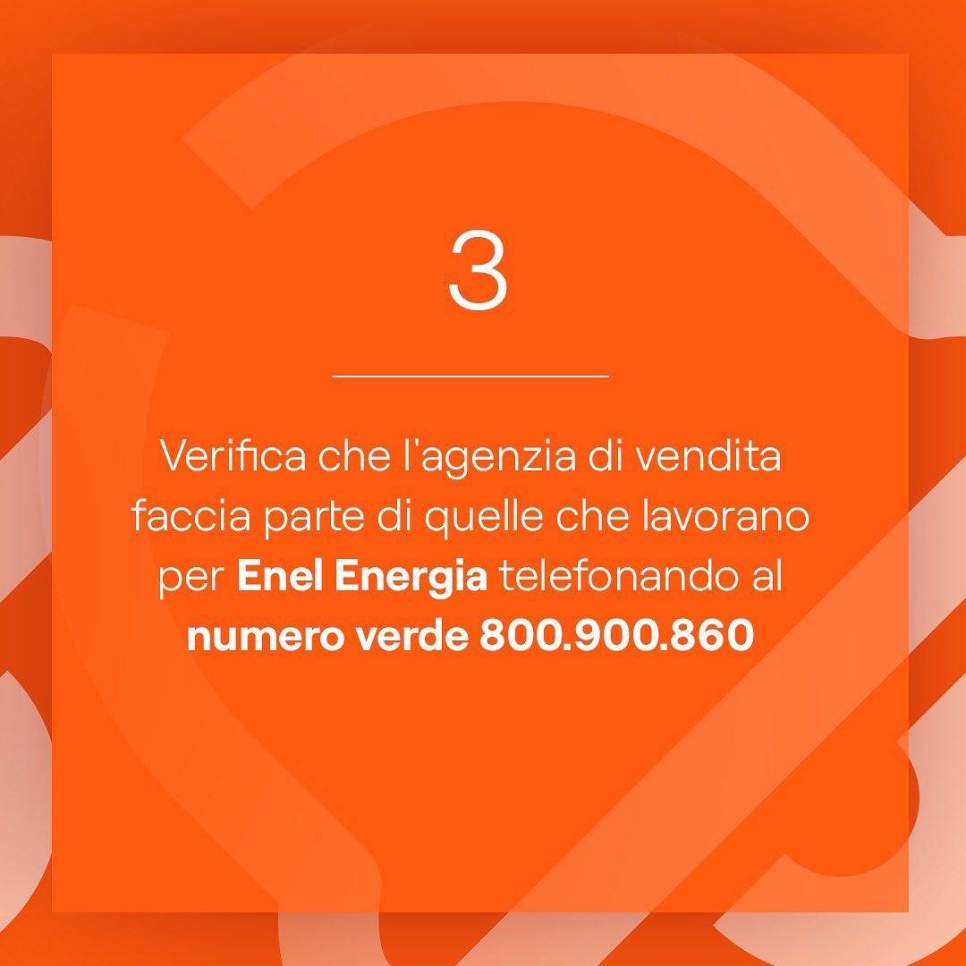Puoi sempre verificare che l’agenzia di vendita faccia realmente parte di quelle che lavorano per Enel Energia telefonando al numero verde 800 900 860.