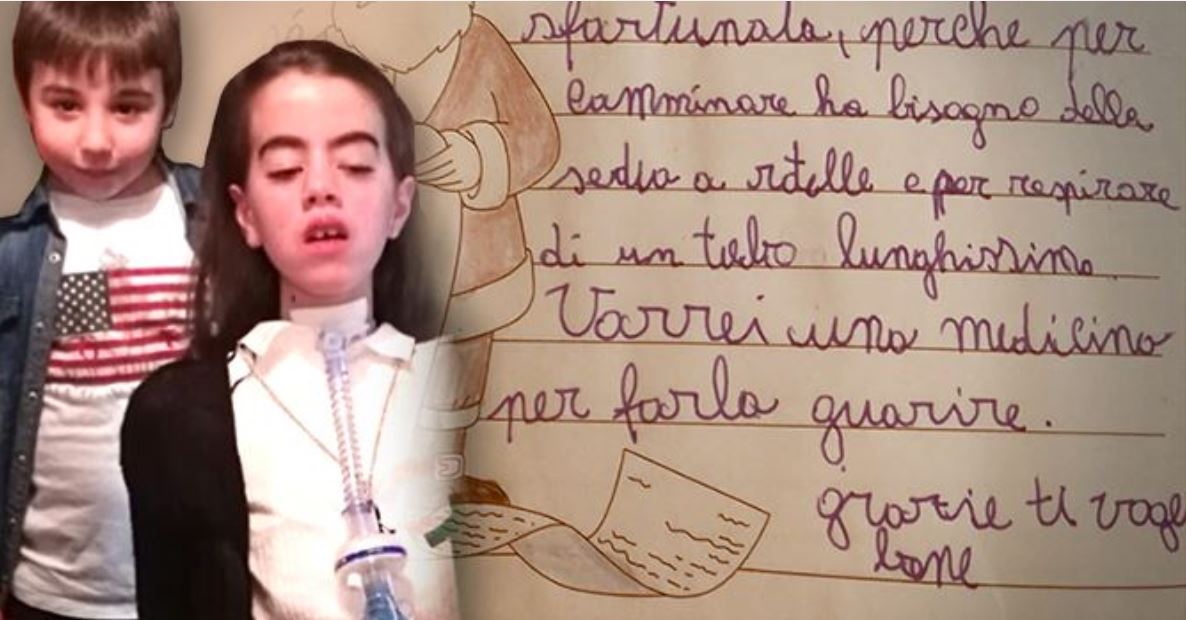 Diventa simbolo di generosità la letterina di un bambino calabrese che chiede di trovare sotto l’albero il farmaco che potrebbe aiutare Marica, 12 anni, affetta da una malattia genetica rara