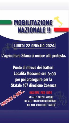 Il nutrito gruppo silano- a bordo dei trattori- si muoverà il prossimo 22 gennaio verso Cosenza, attraverso la statale 107