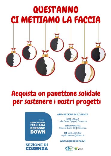 L’Associazione Italiana Persone Down (AIPD) – Sezione di Cosenza inaugura la terza edizione della campagna dei Panettoni Solidali con un evento di lancio che si terrà sabato 29 novembre, dalle 10:00 alle 19:00, presso il Centro Commerciale Metropolis di Rende.