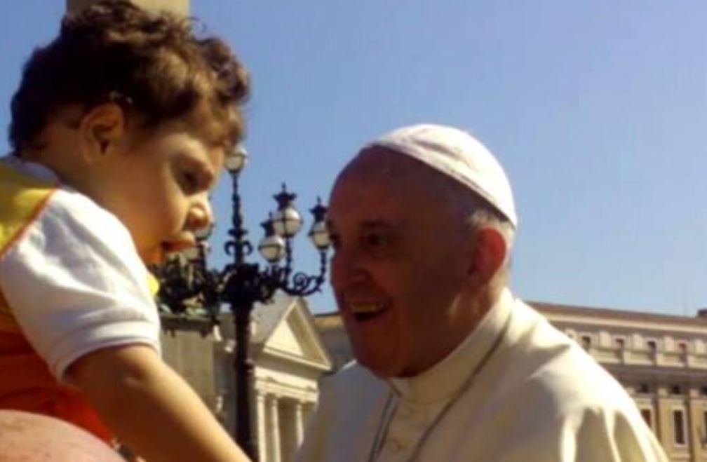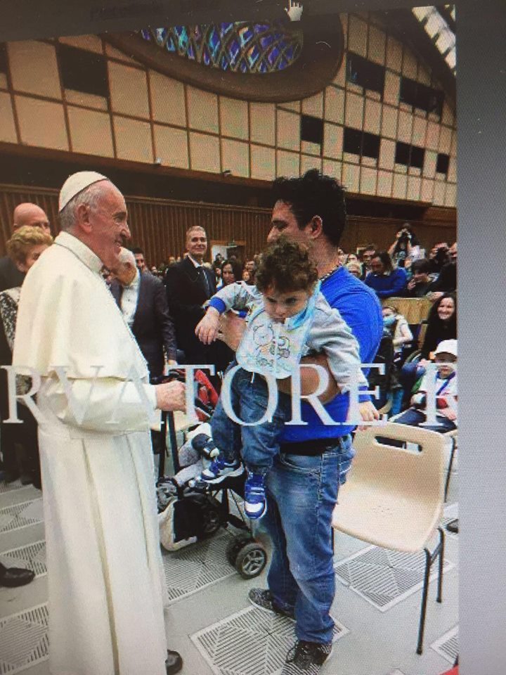 Riceviamo il commovente appello del papà di Samuele, Cesare, al quale vogliamo ovviamente dare seguito. Nel 2016 pubblicammo anche noi la foto del bacio di Papa Francesco al piccolo Samuele…